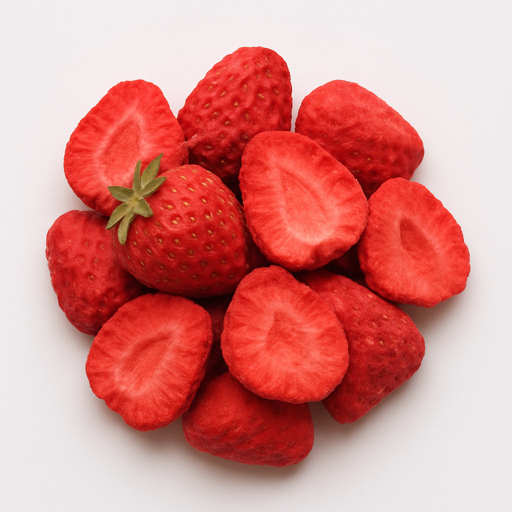 Gefriergetrocknete Früchte werden durch ein spezielles Verfahren schonend getrocknet, bei dem das Wasser entzogen wird, während Vitamine, Mineralstoffe und Geschmack weitgehend erhalten bleiben. Sie sind knusprig, leicht und intensiv im Aroma.